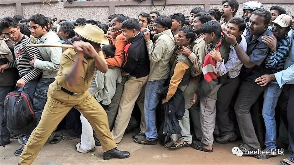 “在印度,你经常看到一名警察仅用一根竹棍就能控制一大群人。”