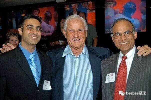业界大亨Satish Duggal(右)和儿子(左)共同掌握纽约和俄亥俄州的14家酒店,Don Shula(中)为前美国职业棒球主教练