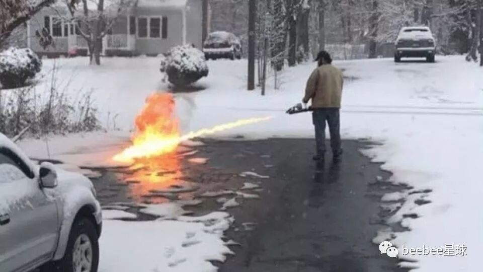 去年美媒报过一弗吉尼亚州老光棍用火焰喷射器扫雪的新闻,大家都在为他的创意鼓掌。