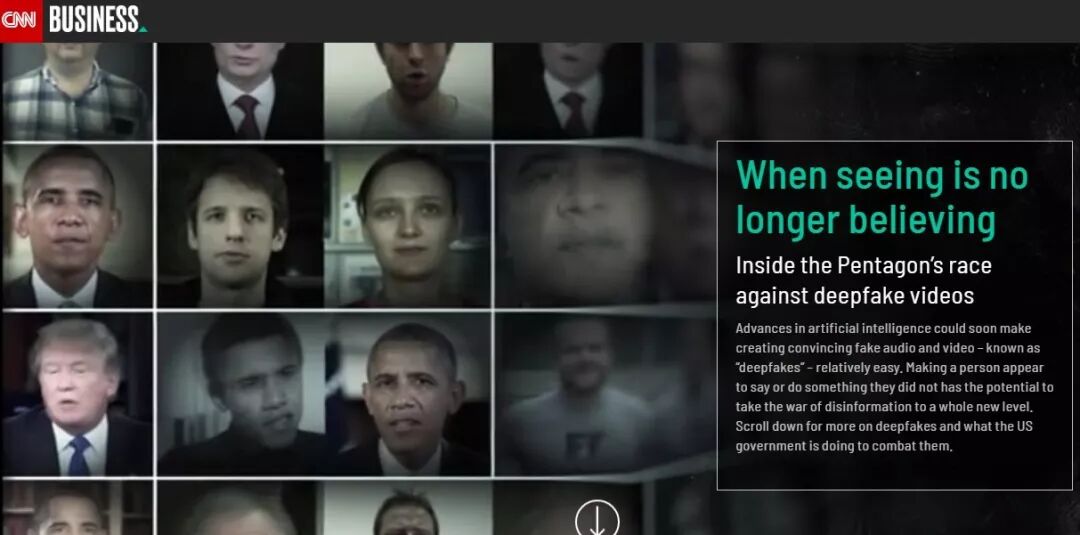 五角大楼更是把对抗Deepfake提升到了国防战略的层次并称“这是一场军备竞赛”。CNN对此作了一篇分量沉重的报告。