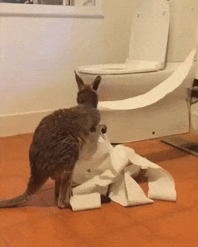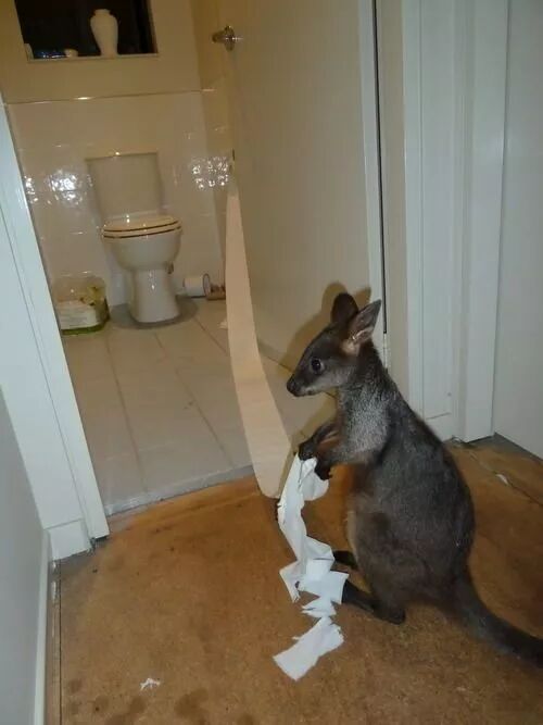 有些领地意识很强的袋鼠甚至会划地为王,仗着身体优势堵住厕所的门,肆意享用可口的厕纸。