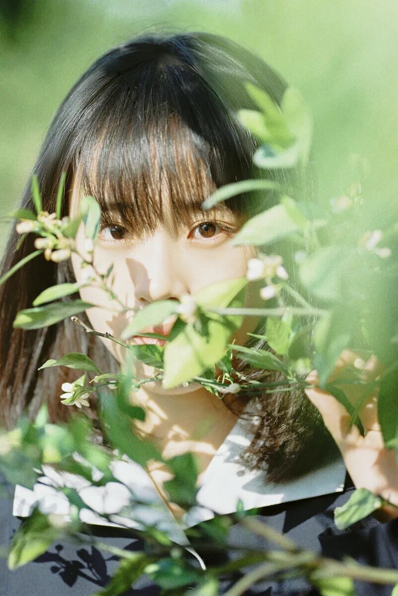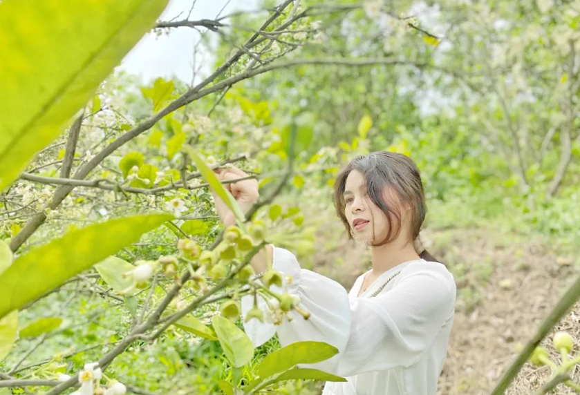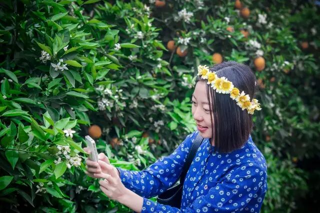 想要拍得更自然,还要借助一些道具,可以拾一些掉落的柑橘花当作拍照道具,一点都不会尴尬僵硬啦~