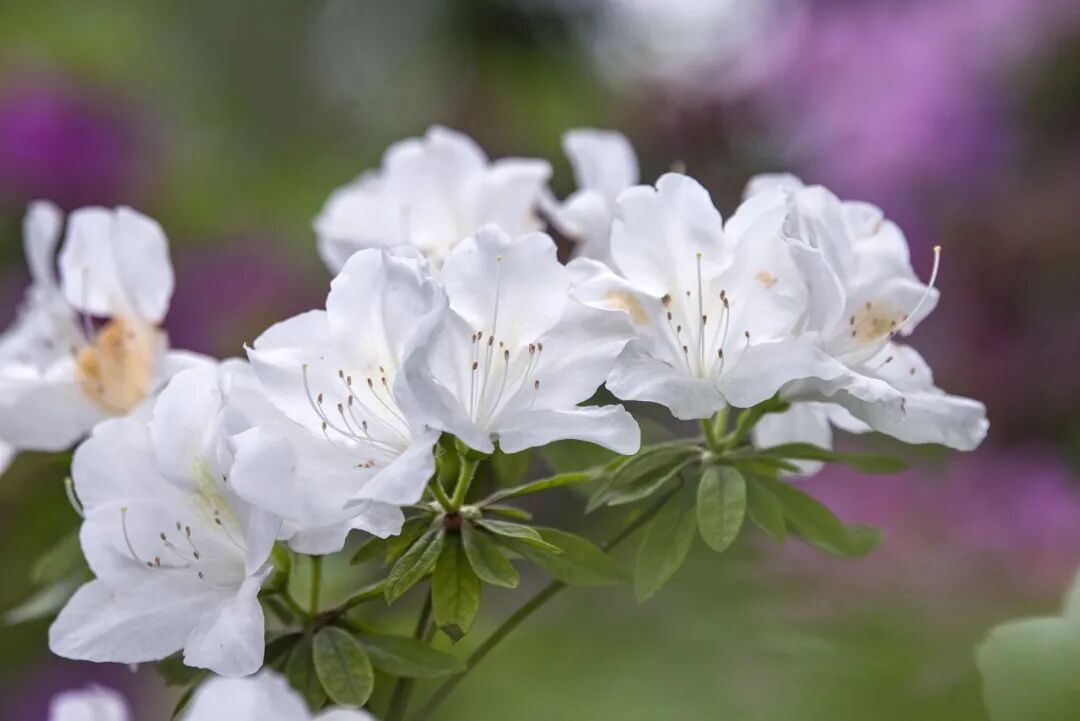 每年,武汉植物园都有新的种类上新,今年新增了马银花、刺毛杜鹃、岭南杜鹃、山麓杜鹃等11个物种,‘仙鹤’‘弯朔’‘火烈鸟’等14个新优园艺品种。这里有杜鹃的野生种,带着未经驯化的野趣和小清新,展示着杜鹃原生的惊艳感。而众多园艺品种,通过人工巧手凸显杜鹃的美丽特质,打造最时髦的流行单品。