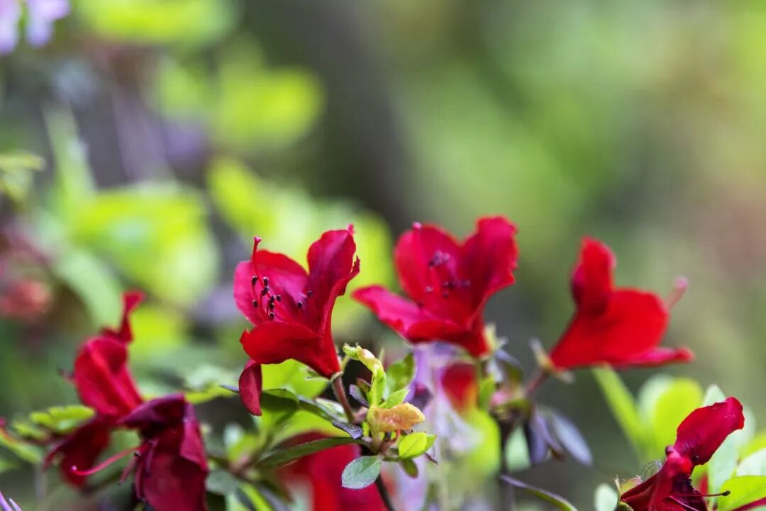 舒适的四月风吹起,原本荡漾翠绿的山林化作漫天嫣红浩浩荡荡地蔓延开来,似燃烧的花火,热烈又浪漫。