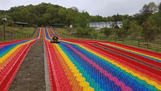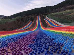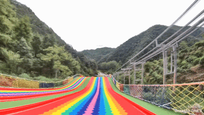 坐上七彩滑梯从“云端”粗发,在彩虹间呼啸而下
