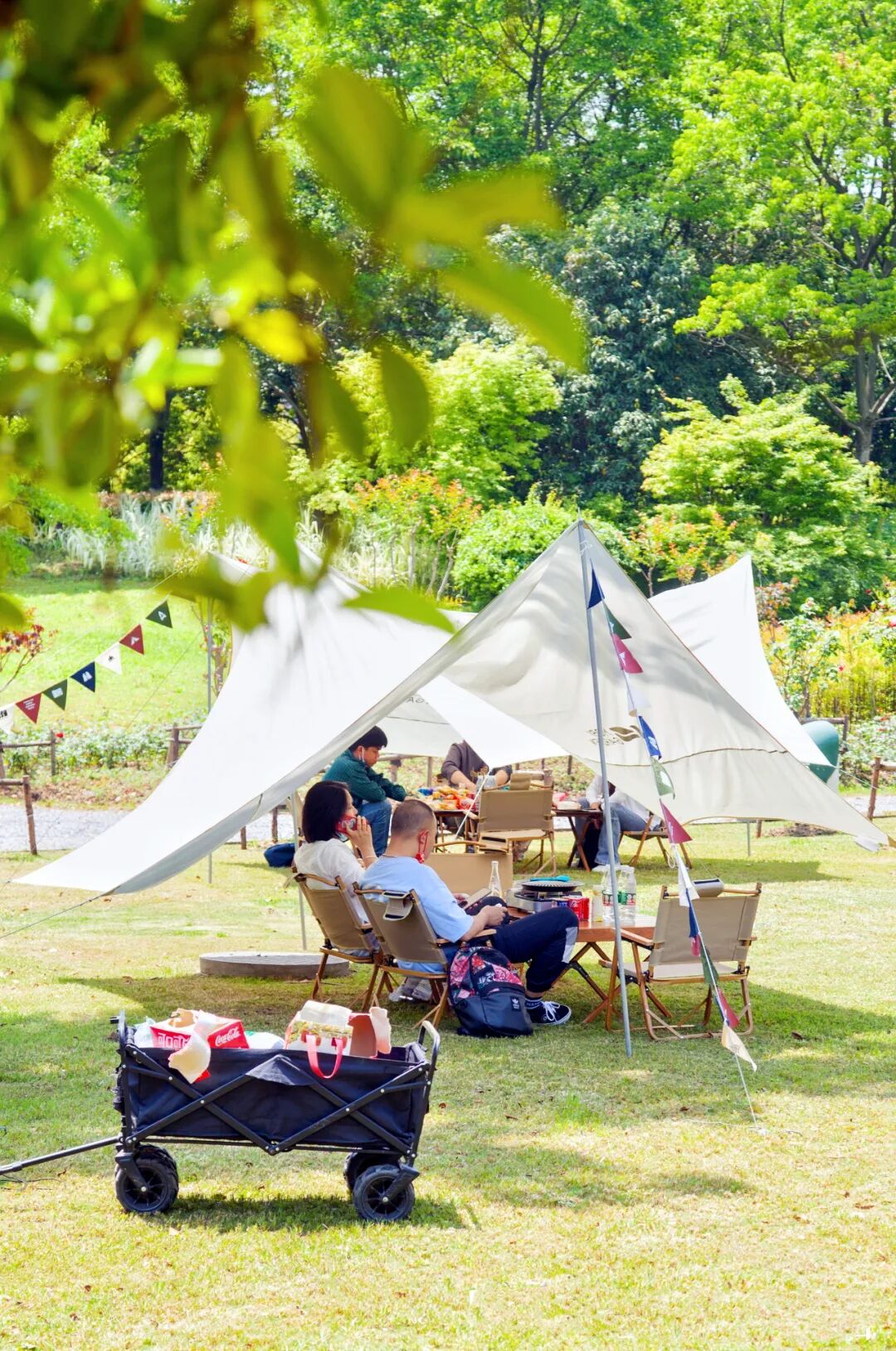 别急着放弃,我们在东门众乐苑和北门玫瑰园帮你搭好天幕,布置好野餐位,设置了不同的露营套餐。