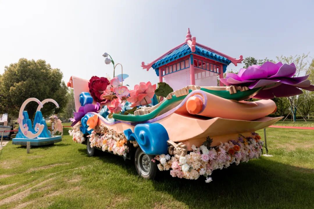 萌趣可爱的蔡文姬主题花车,宁波园线下《王者荣耀》花园,炫目靓丽。