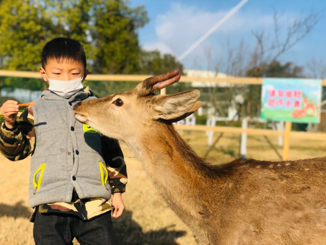 和小鹿一起嬉戏玩耍