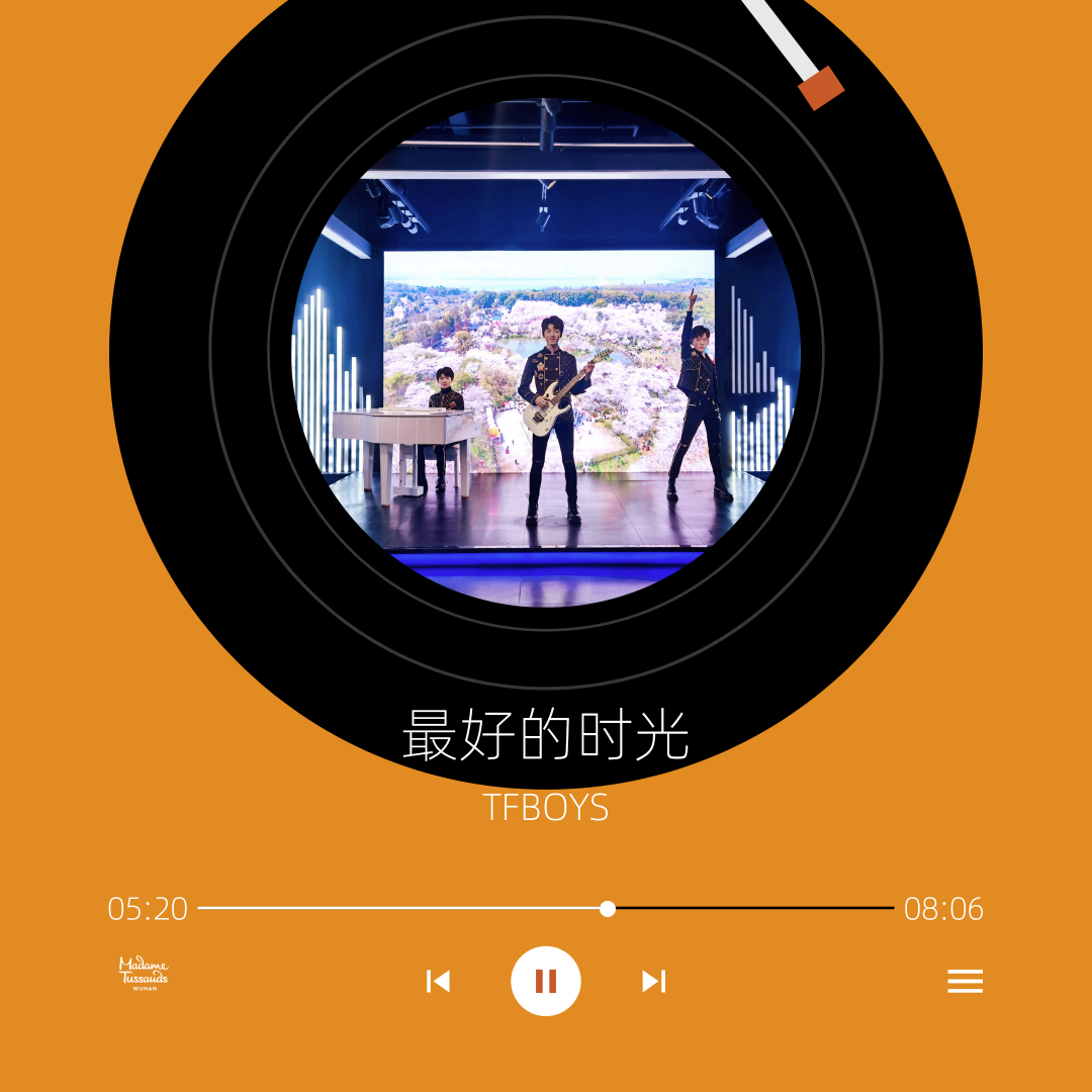 轻轻按下橙色的播放键,熟悉的旋律随之欣然流淌。是时候在五月的阳光中,走入名场面的平行时空,拾起你我的美好回忆了。TFBOYS蜡像将在整个五月持续守护陪伴,与你相见在武汉最好的时光。