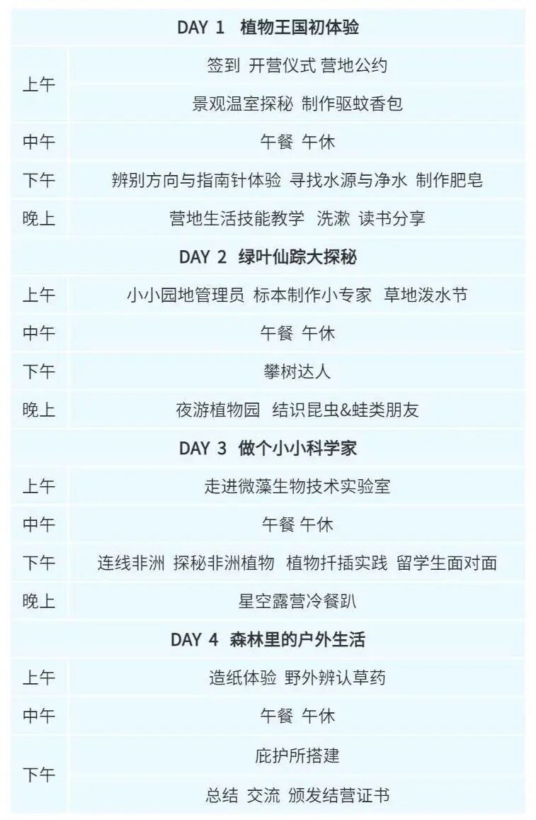 听说,今年暑假,武汉植物园还有更多有趣好玩的夏令营,更多资讯和早鸟特惠,请咨询小植。