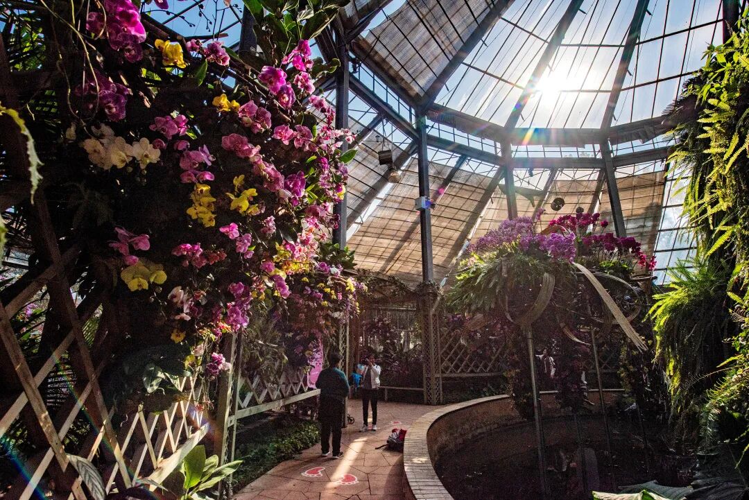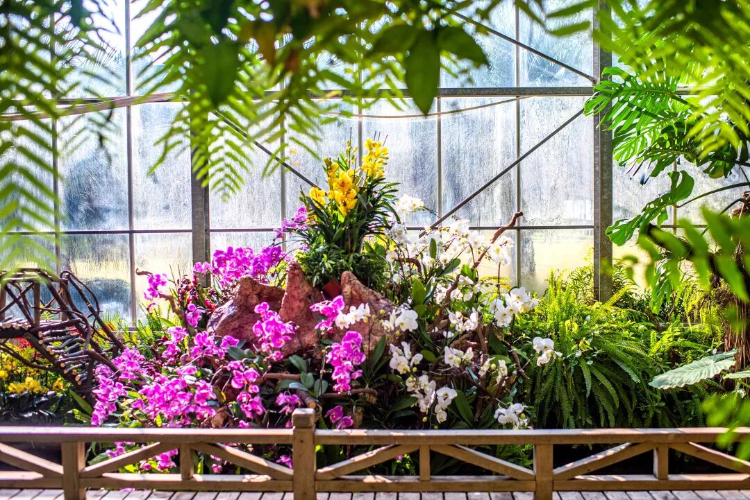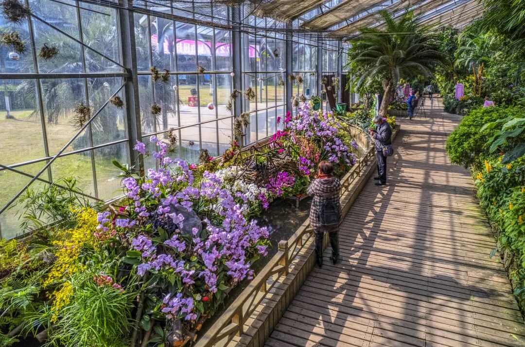 各⾊品种和兰花相互交织⼜互相辉映,每⼀朵兰花都闪耀着⾃⼰的⾊彩与品格,凝聚成了这唯美的意境。缓缓地穿过这些⻔廊,你会了解兰的品格与⽓度。