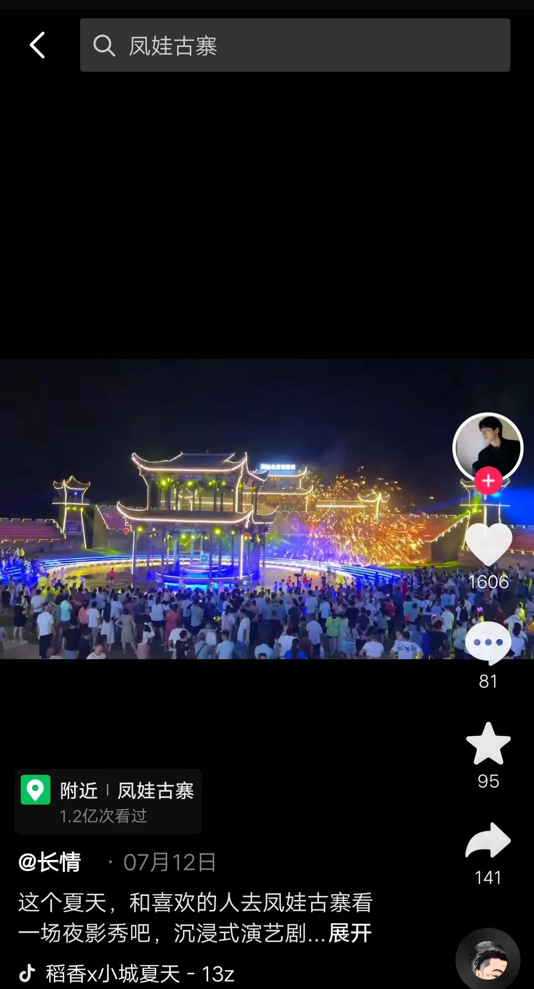 5000粉丝以上的网络达人,参与凤娃夜影秀直播或拍摄抖音短视频,发作品定位凤娃古寨,可免费领取景区两张入场票和两张工作餐券,还有精品伴手礼相送。