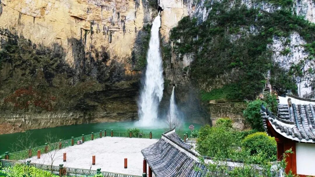 云龙地缝两壁陡直,近于平行,上下宽窄基本一致,断面呈“U”字形,集水蚀峡谷、溶岩洞穴、绝壁峰丛、天坑地缝、瀑布跌水为一体,让人不得不感慨大自然的神奇之力。