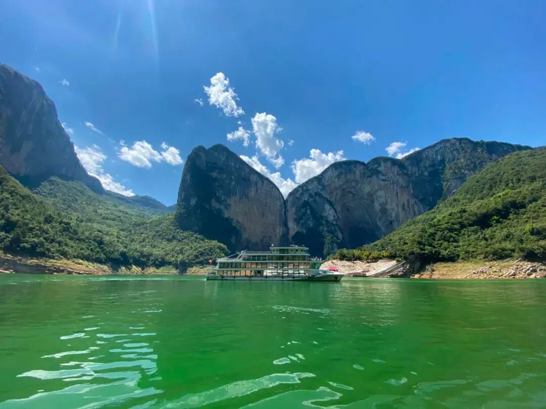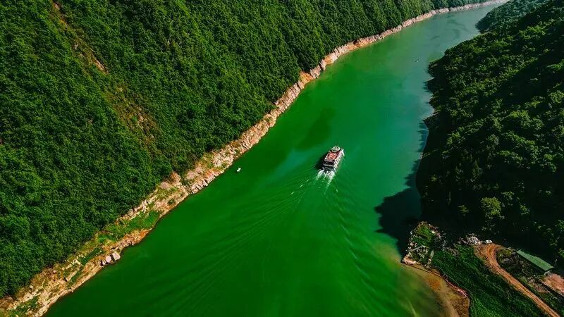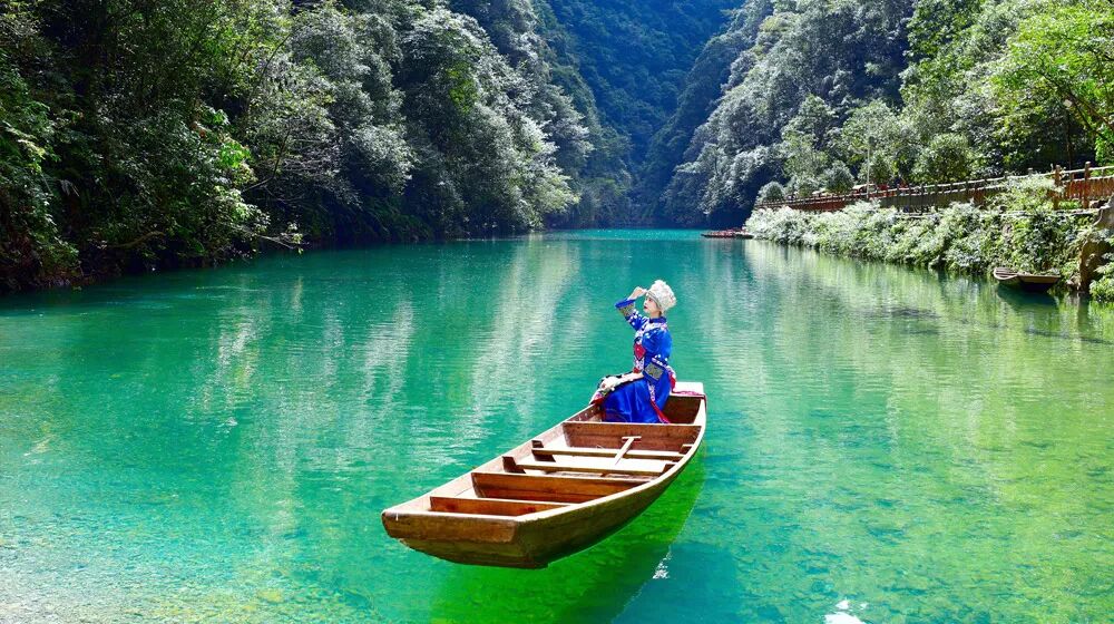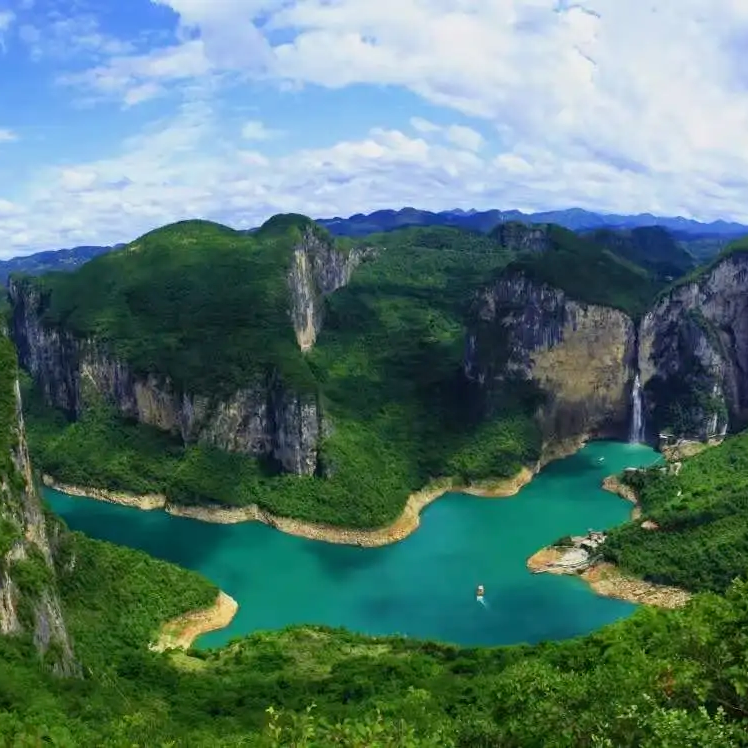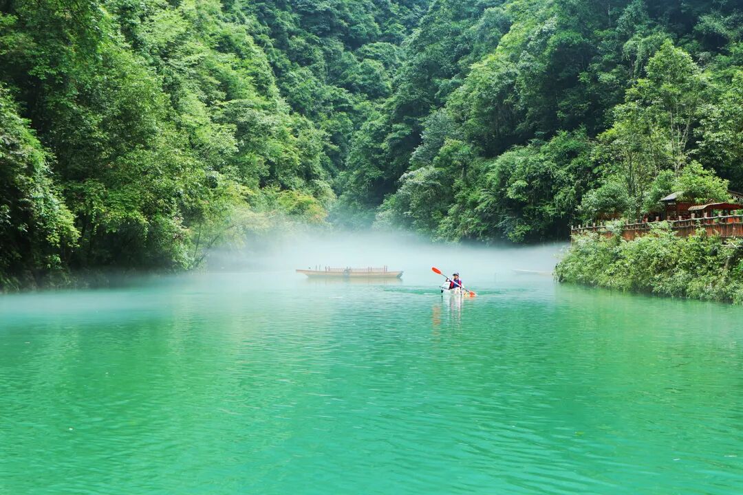 屏山峡谷全长18公里,四周峭壁耸立,集奇、秀、险于一体。山谷地缝移步换景,如穿越时空;舟行绝尘之水,如悬浮浩瀚宇宙。被无数网友赞誉“中国仙本那,世外古桃源”。
