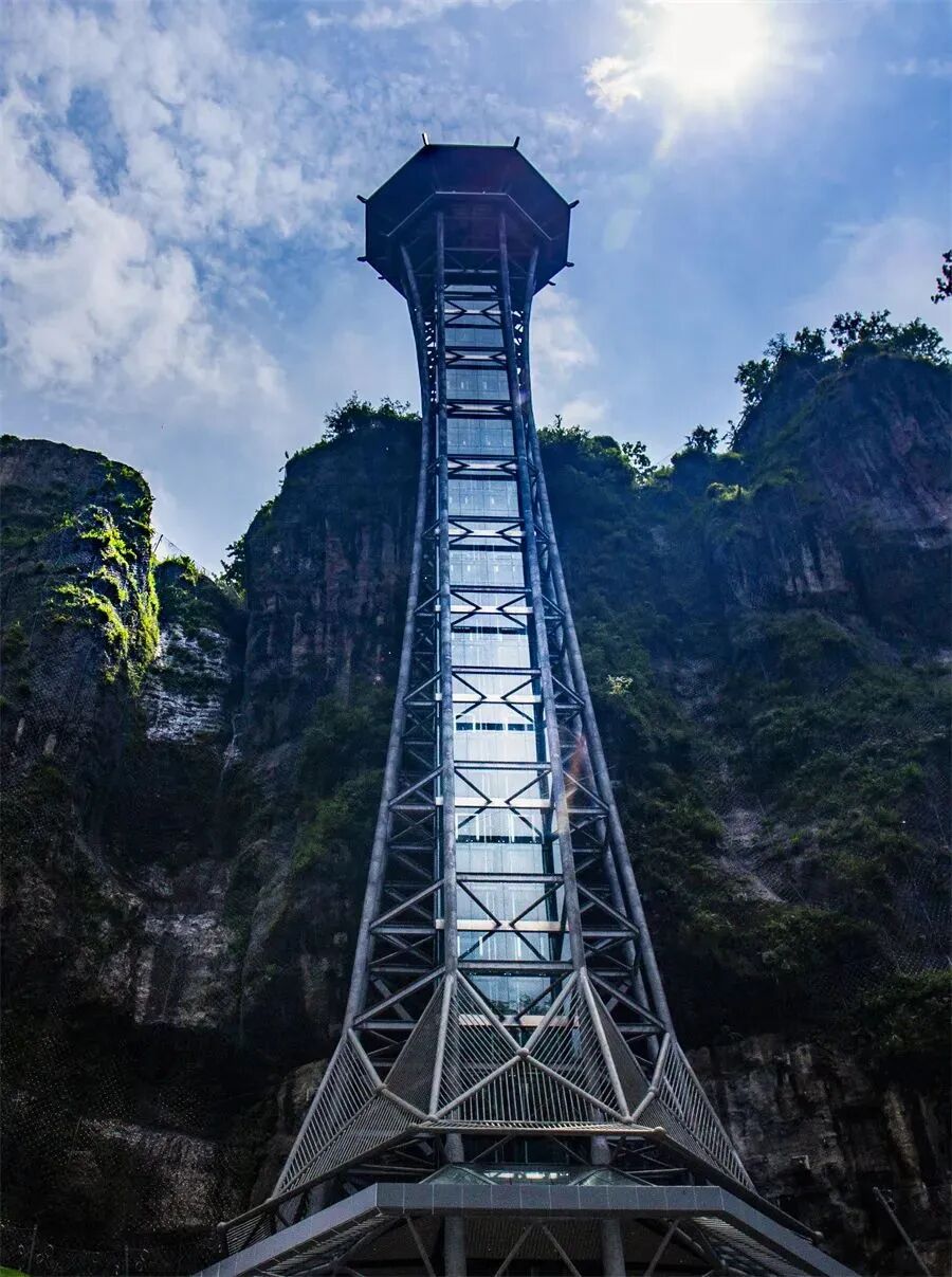 在云龙地缝出口处,有一道风景线——“小蛮腰”型观光电梯,乘坐观光电梯可减少700多级天梯,轻松走出地缝。(地缝30元/人上行电梯不含。可根据身体状态自行选择,节约体力建议乘坐)
