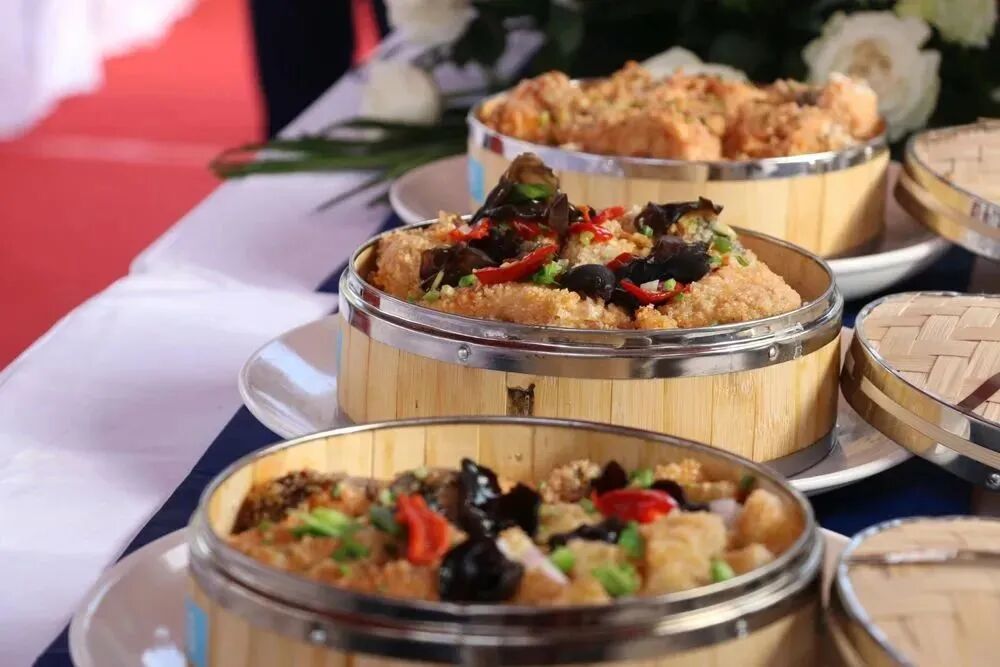 三蒸九扣十大碗,不上蒸笼不成席。来沔阳一定要吃沔阳三蒸。也不能忘记熟而不烂、油而不腻的毛嘴卤鸭,酥脆的锅盔,软糯的杨婆婆团子,辣嘴又爽心的鸭肠串……