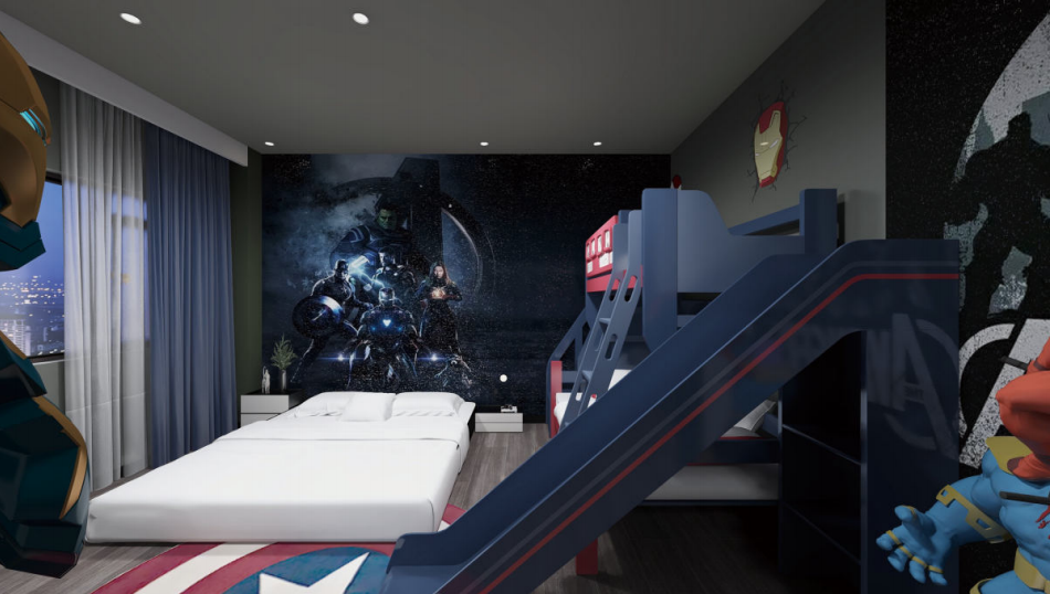 利落霸气的变形金刚房、温馨俏皮的小猪佩奇房、萌萌粉红的hello kitty房……一推开门,便踏入了神奇的二次元世界。在充满童趣的氛围里,尽情享受惬意的亲子时光。