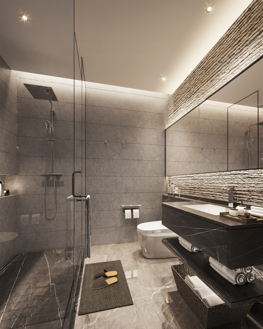 洗浴配置很有质感,大面积玻璃材质让空间在视觉效果上呈现出宽阔流畅的韵律感。