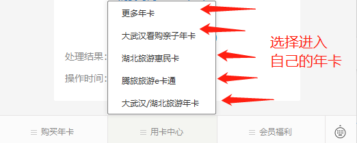 步骤3:进入:自己所持年卡的用卡中心