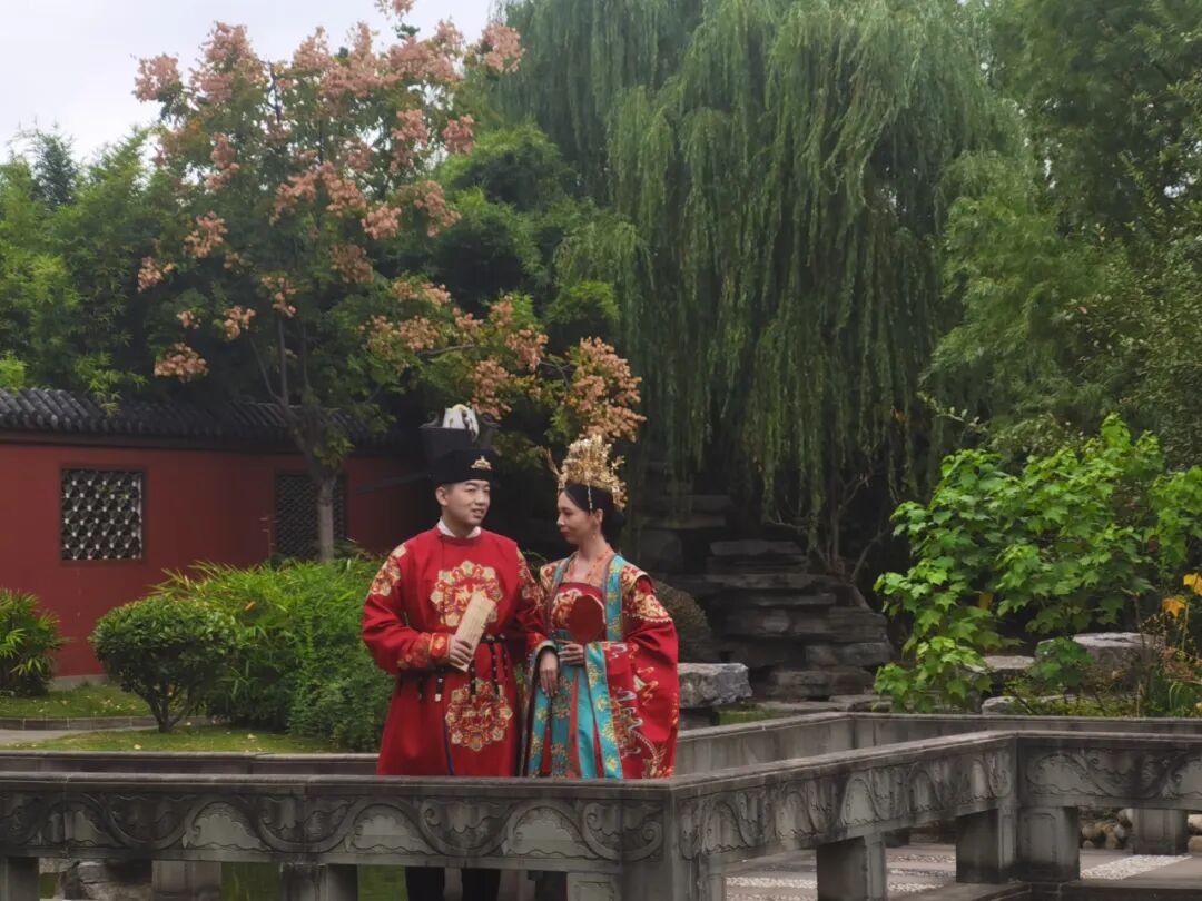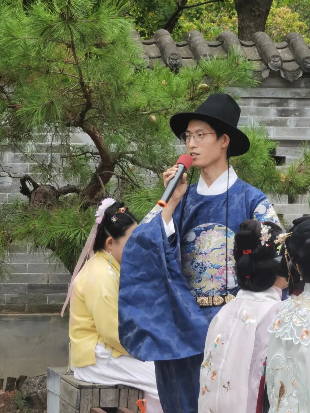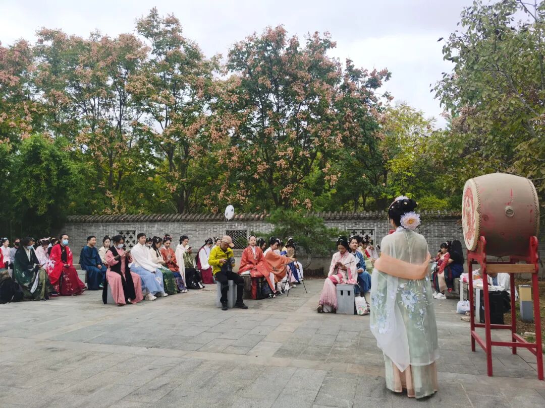 汉服爱好者重阳游园,饮菊花酒、行“菊”字飞花令,携手汉婚礼