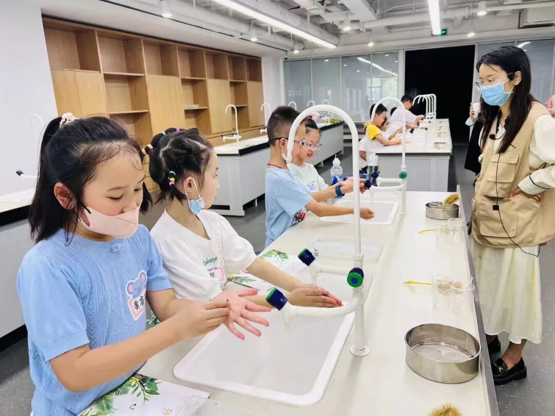 “偶遇露营 自然之旅”中,研学导师们带领孩子们在园区空中花园开展“自然之美”植物科普研学课堂,与父母亲子合作搭建露营帐篷,动手DIY无患子洗手液。
