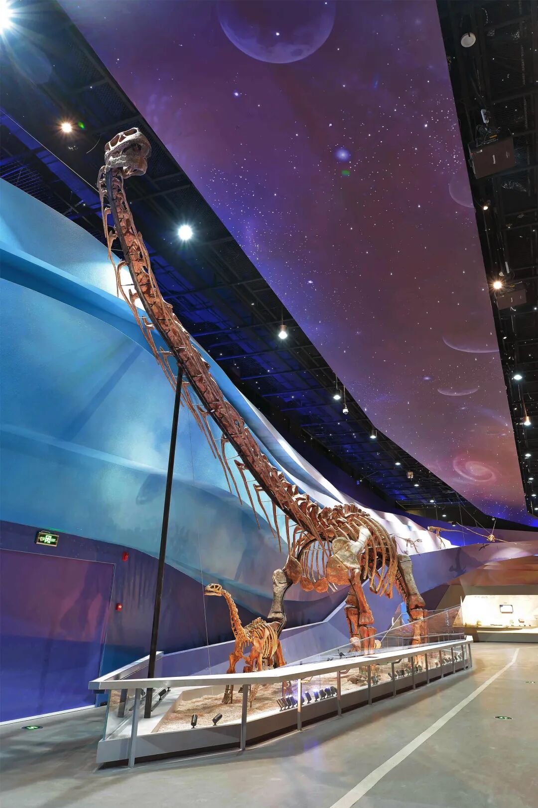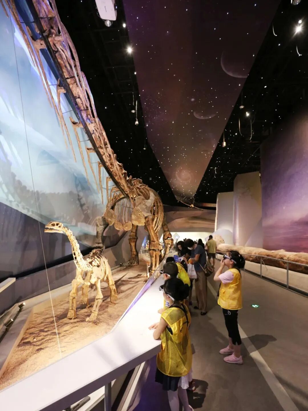 十大镇馆之宝夺人眼球,在这里,可看到出土新疆奇台、中国最大的侏罗纪时期的中加马门溪龙,长37米直径2.7米侏罗纪时期的硅化木;既能看到重20吨的三叠纪时代的龙足迹化石墙,还能一睹世界罕见的白狮、西非低地大猩猩等珍稀动物标本的风采。