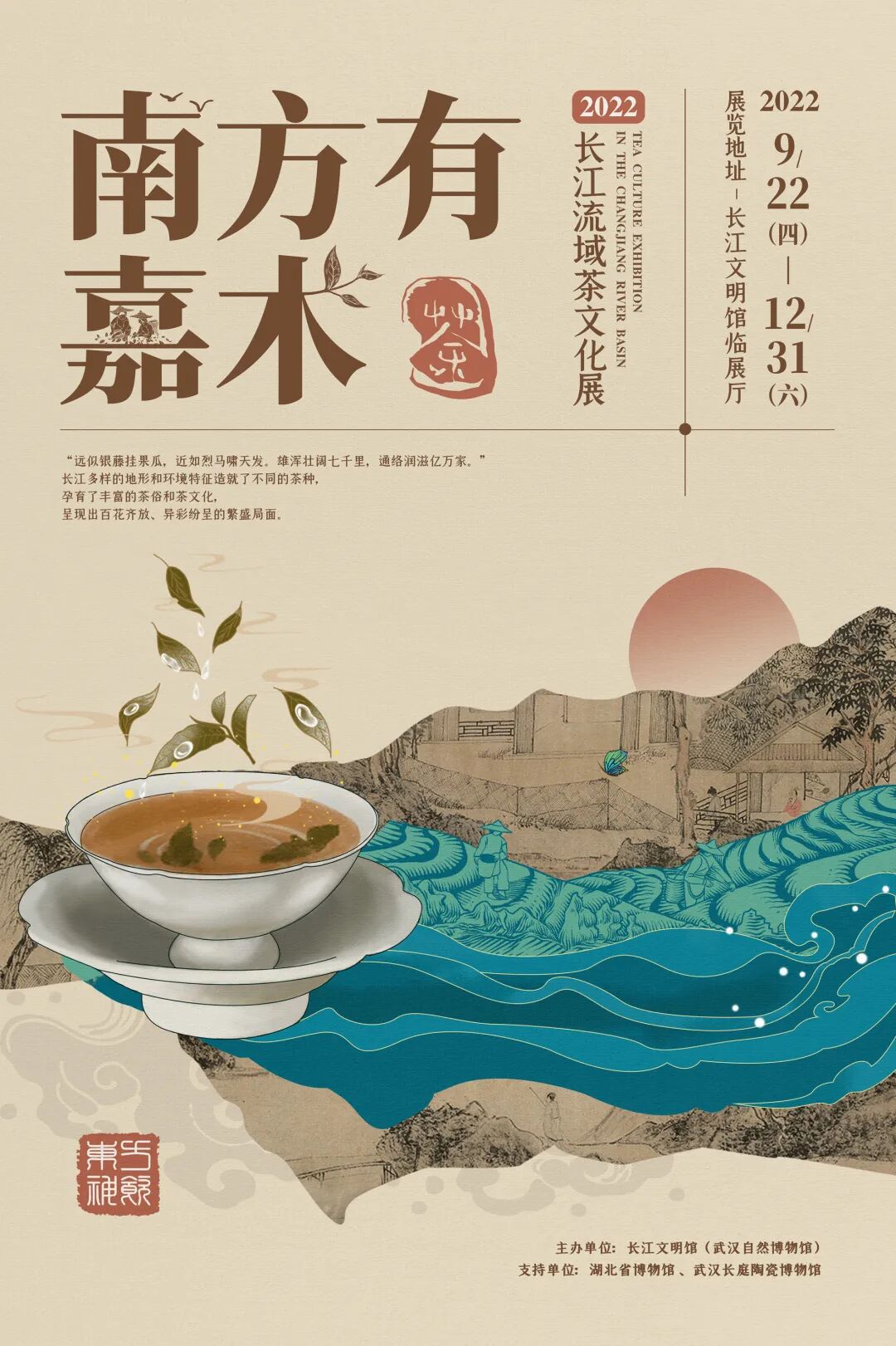 展览以“茶文化”为主题,分为“茶史溯流”、“茶品百味”、“茶具荟萃”、“茶学浩瀚”四个单元,围绕茶史、茶叶、茶具、茶学等重点内容,集中展示长江流域各时期典型的茶具、茶器,各地区具有代表性的茶叶、茶砖和反映茶文化相关的书画等展品,其中不乏唐长沙窑青釉褐彩鱼形茶臼、唐青釉茶碾、北宋青白釉印花执壶、清康熙青花十二月令杯、清《虞蟾王素合写品茶听阮图》等珍贵文物。展览辅以多元化的展陈手段及丰富的互动研学课程,生动展示长江流域丰厚的茶文化。