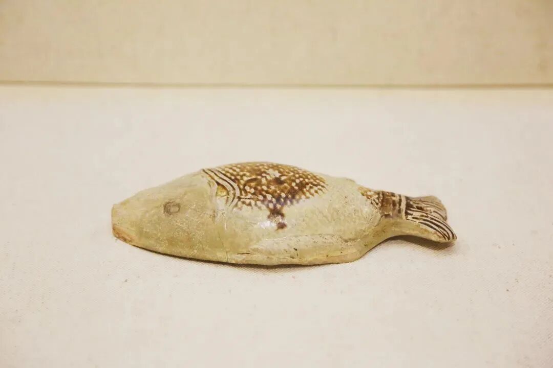 ▵长沙窑青釉褐彩鱼形茶臼/唐