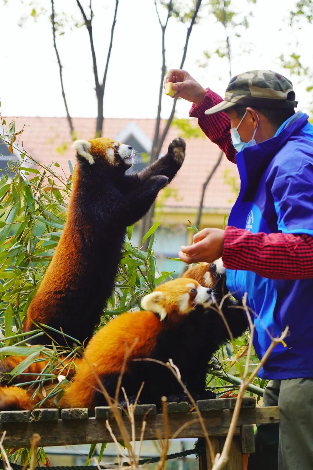 为了防止苹果氧化,苹果一般会由饲养员当场切好喂给小熊猫哦~