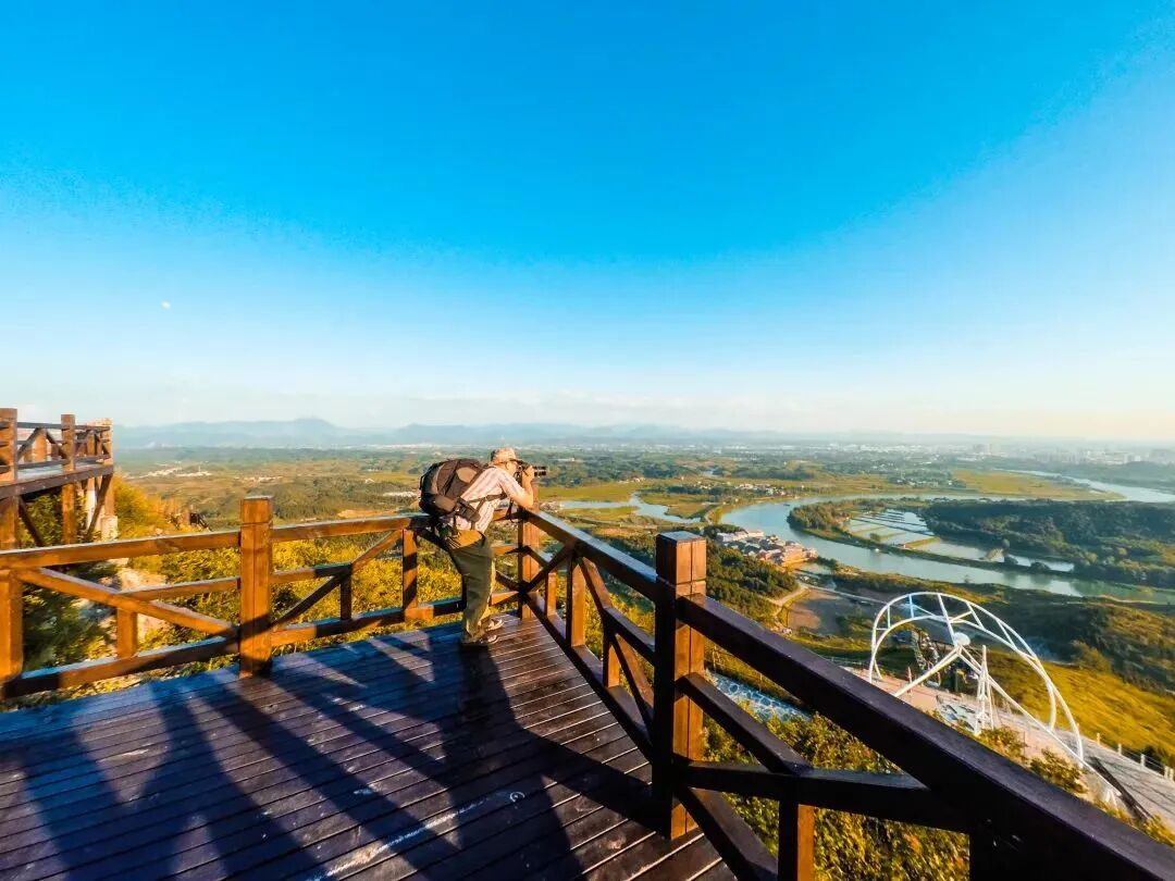 燕子垭山顶海拔293米,是景区最高点。索道全长431.75 米,上下站高差165.5米,腾云驾雾,恍若遨游仙境。在露天休息台上俯瞰隽水河,在细碎的慢时间里捕捉风景。