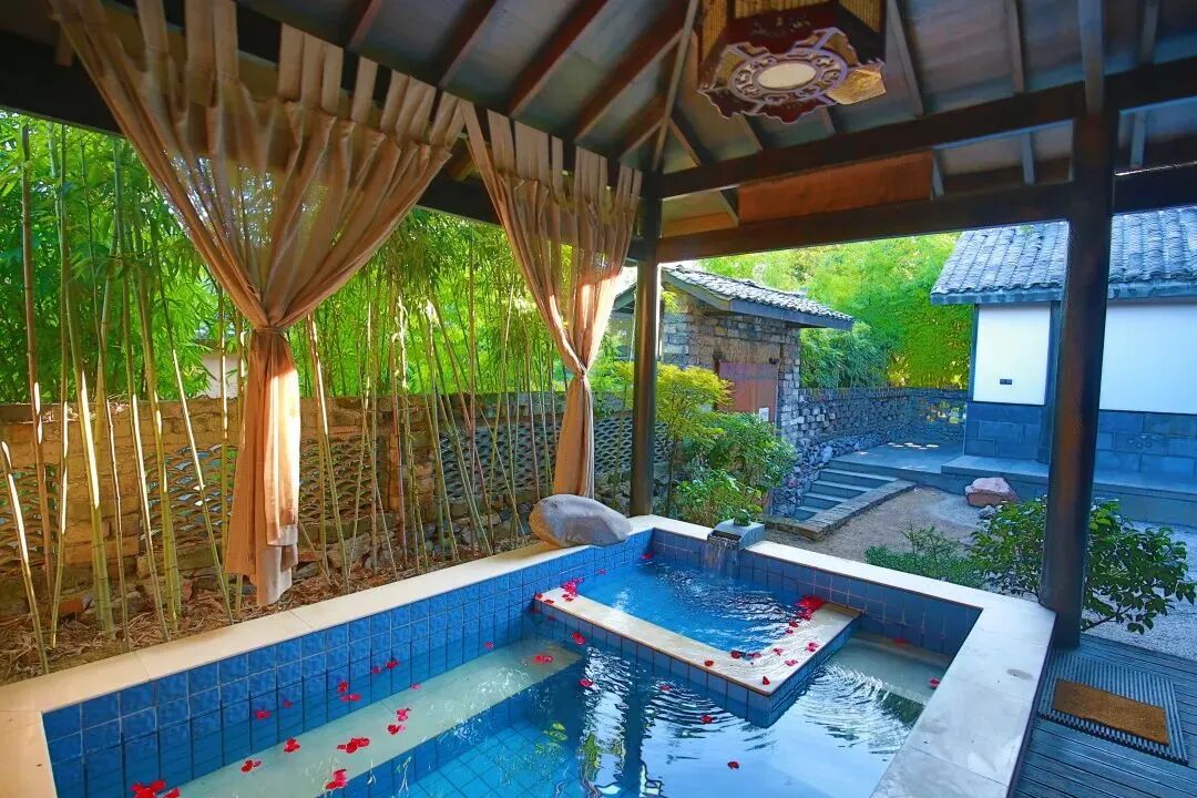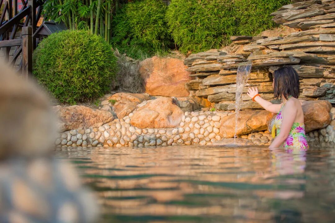 浪口温泉70个主题各异的温泉泡池依地势而建,牛奶池、原汤池、玫瑰花汤、养颜汤......汤池与自然季节交互,夏有荫翳秋有月,天光云影,涓涓细流,涤荡游者心灵。