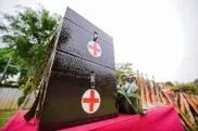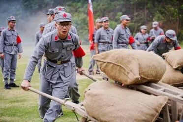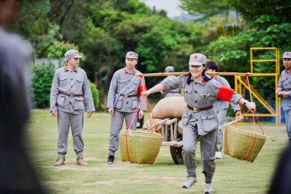 一声令下,队员纷纷负重前行,将弹药、粮食、医疗用品等放到筐中,争分夺秒送到终点,体验战火纷飞的年代一路征程的艰辛。