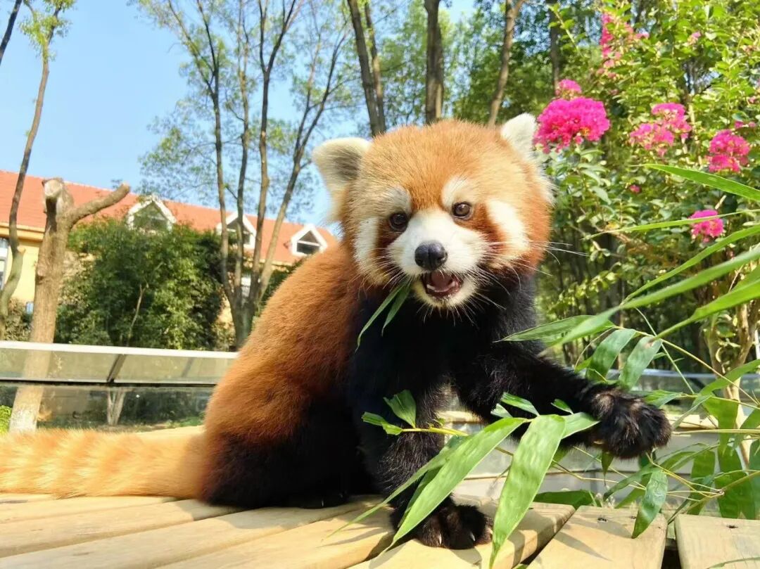 喜欢竹叶与苹果的小熊猫也会在秋天,保证每天的营养~吃好好,小熊猫的毛发也会长得更好~小熊猫红火的毛发,可是保暖神器!这不比暖宝宝好使?