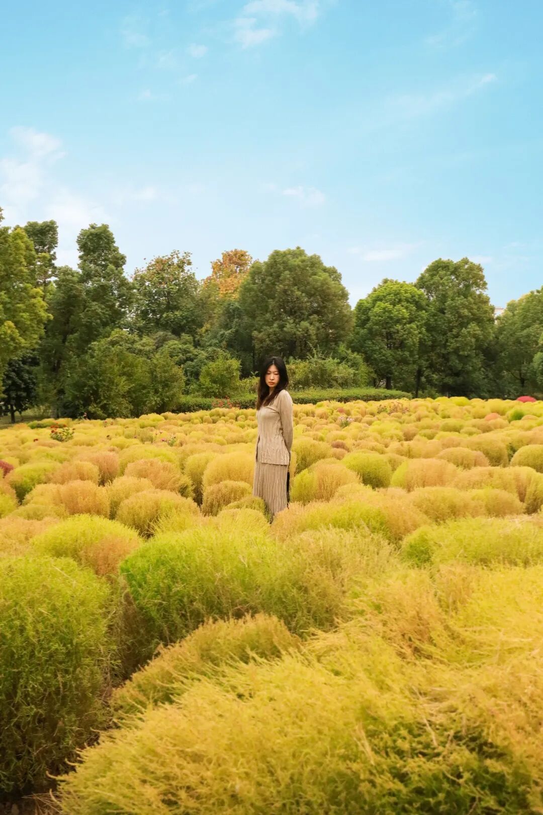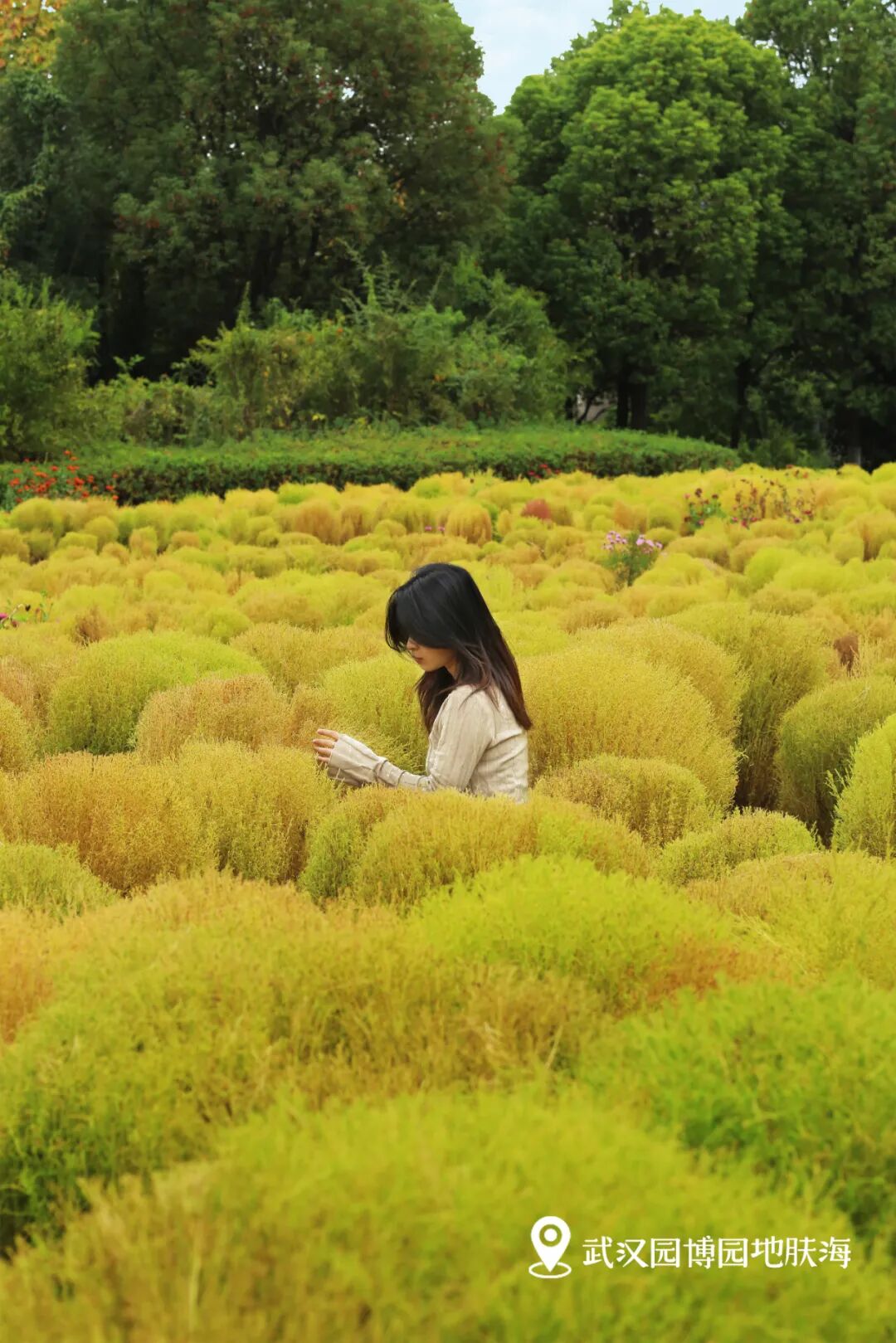 今年秋季,除了地肤,园博还有百日草、格桑花、醉蝶花、波斯菊等十多种花卉,随便一拍都是出片美景。