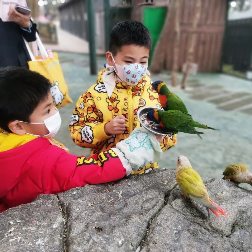 “彩鹦宫”里的鹦鹉最喜欢和小朋友一起玩啦!