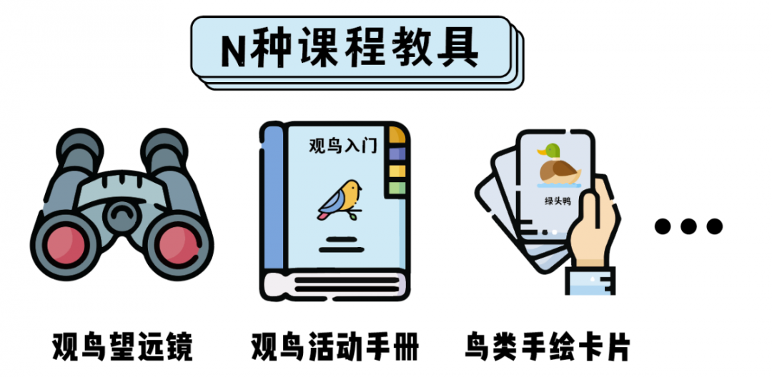 观鸟导师还为课程准备了丰富的课程教具,让我们一起通过本次课程,共同打开鸟类知识的大门吧。
