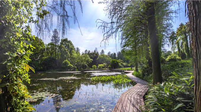 中国科学院武汉植物园坐落于东湖之滨、磨山南麓,“浩瀚”的东湖将这个“自然剧场”环绕、与城区的喧闹相隔;这里是国家植物资源储备和植物迁地保护的综合基地,森林植被覆盖率高,生态优良,四季鸟语花香。