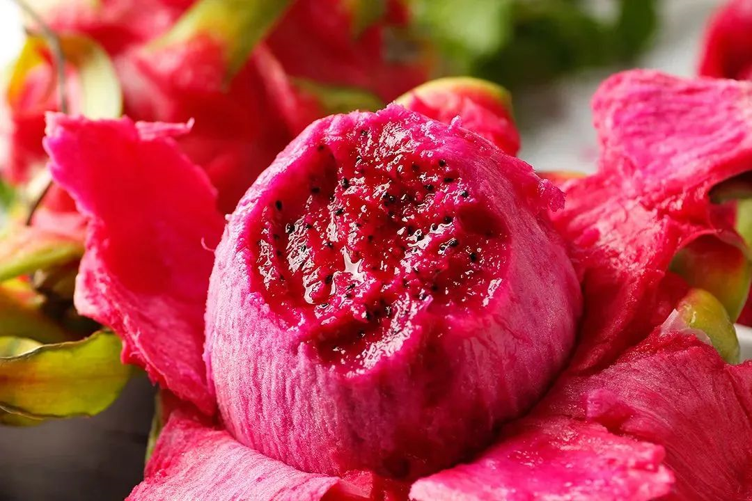 红心火龙果不仅是味蕾诱捕器,更是养生王道的利器。富含膳食纤维和花青素,对养胃、润肠、护肝、抗老、美颜、提高免疫力和预防各种疾病都有帮助,兼具美味与营养,适合家庭常备的一款水果。而且热量低,减肥人群同样适用哦~