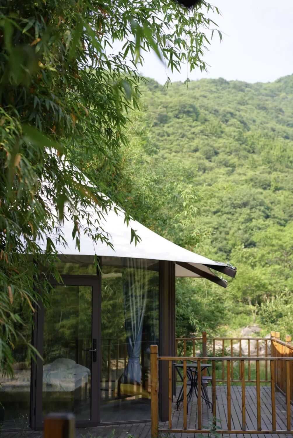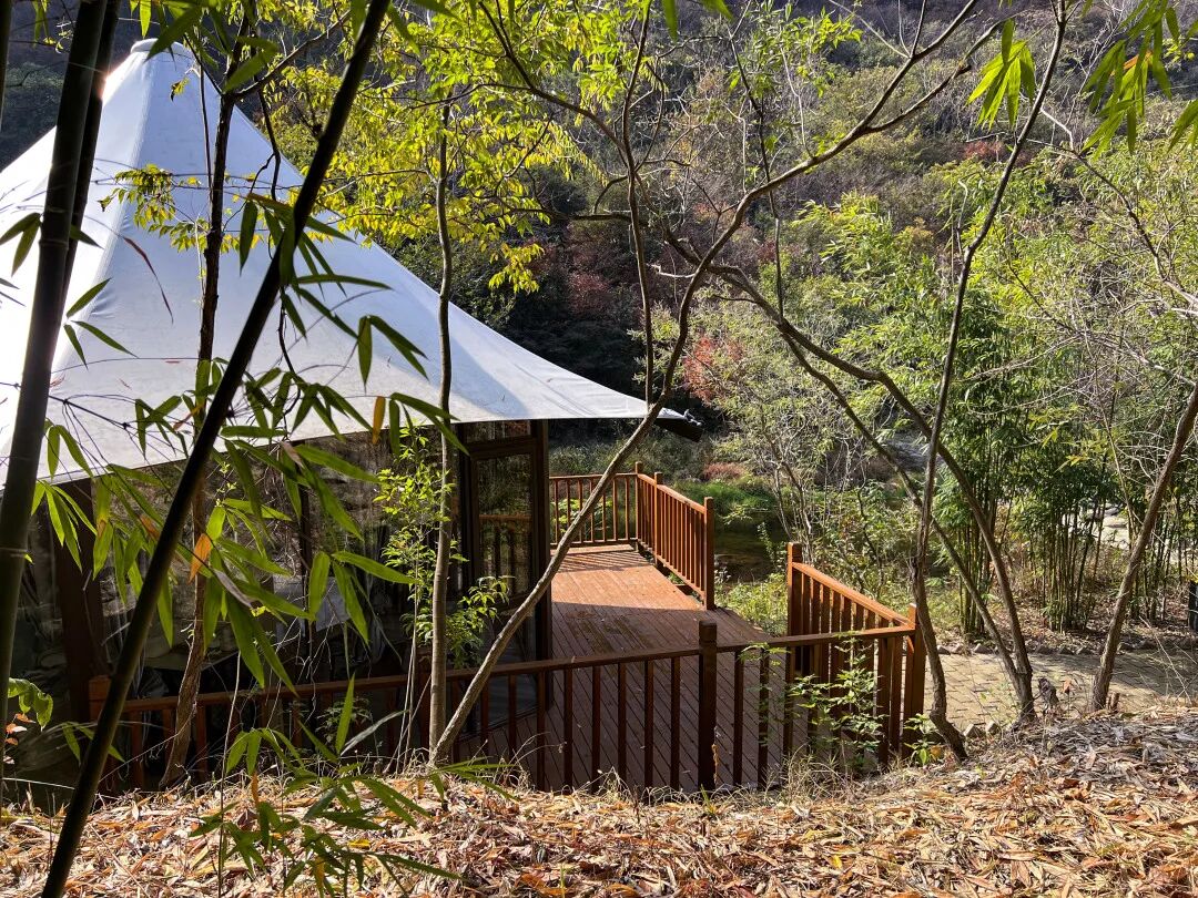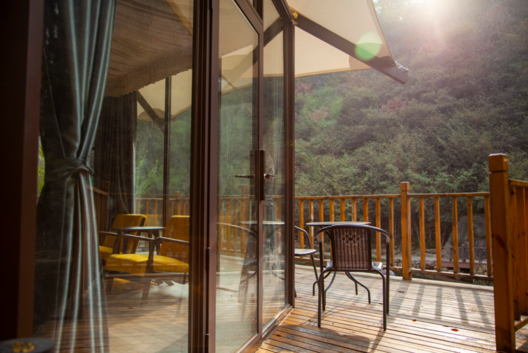 玻璃观景房,面朝溪谷,背靠树林,远离城市的聒噪和喧嚣。