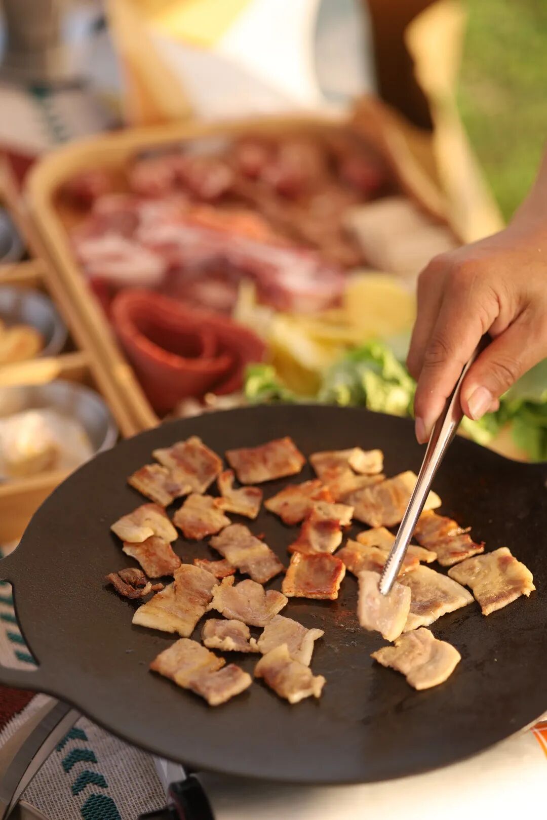 坐在白色天幕下,看着周围的美景,看着烤盘里滋滋作响的烤肉,美好就在此刻发生。