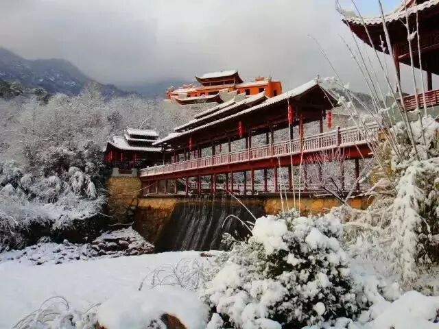 它凡而不俗,雅而不素,宁静祥和,遗世独立。冬季雪后,漫山银装,景色佳绝。山石嶙峋,别具风骨。特别是冬季的女儿桥、忠孝王府、白虎堂等更是庄严肃穆,令人神往。