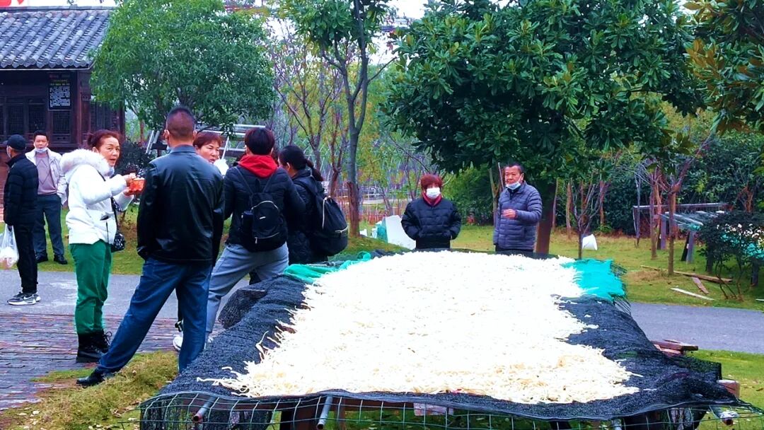 乡里在四时八节来个客人,豆丝可以当成速食待客,虽简单但不失礼节。特别是春节来临之时,乡亲们在自家办年货的单子中就少不了摊豆丝一项。凤娃古寨有专门的豆丝作坊,浸米、打浆、制作、切晒、装箱全套一体化完成,游客还可现场品尝。