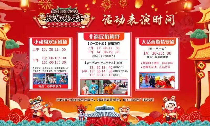 在春节这个传统节日里,紫薇都市田园依托花卉资源、花香美景,策划了一系列新春民俗活动,让各位过一个旧时武汉味的大年,体验浓郁的老春节民俗,感受浓浓的年味。