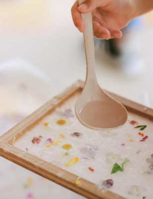 造纸术作为中国四大发明,历史意义影响深远。跟随研学老师了解造纸术的发展历史、古法造纸所使用的材料以及造纸的工艺流程,模仿古法造纸工艺,了解古法造纸的使用材料、造纸的抄纸法和浇浆法等工艺,以及花草纸的制作方法和注意事项,跟随老师学习打浆、抄纸、干花布局、染色、晾干等造纸工艺,学习古法造纸的历史知识和传统制作工艺,完成一件造纸作品。