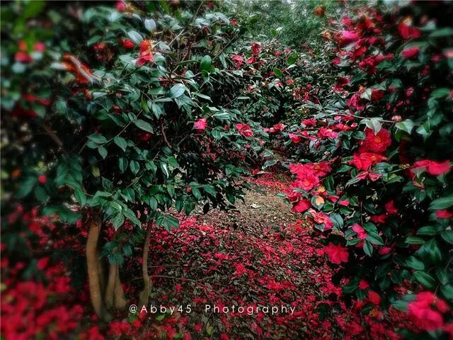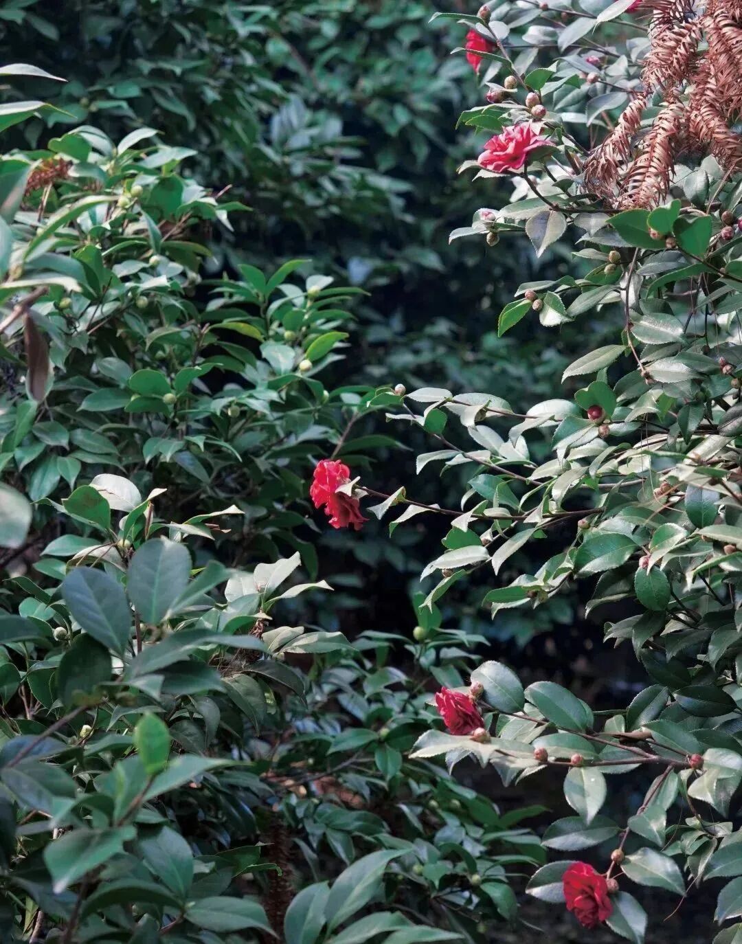 越往深处走,野趣越浓。石板小径通向未知的风景,四下被层叠的茶树包围,红艳艳的茶花星星点点的从绿叶中窜出头来,近处有不知名的鸟儿在叫,游人的欢笑声时不时从下面路上传来。