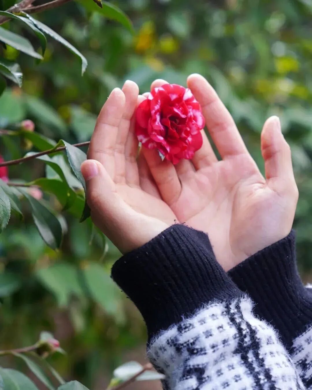 在这千亩山水画卷之中,藏着一处300亩深冬绿意——七彩茶园。30多个品种超过15000株茶花在山林中自在生长,为冬日增添别样生机和风景。
