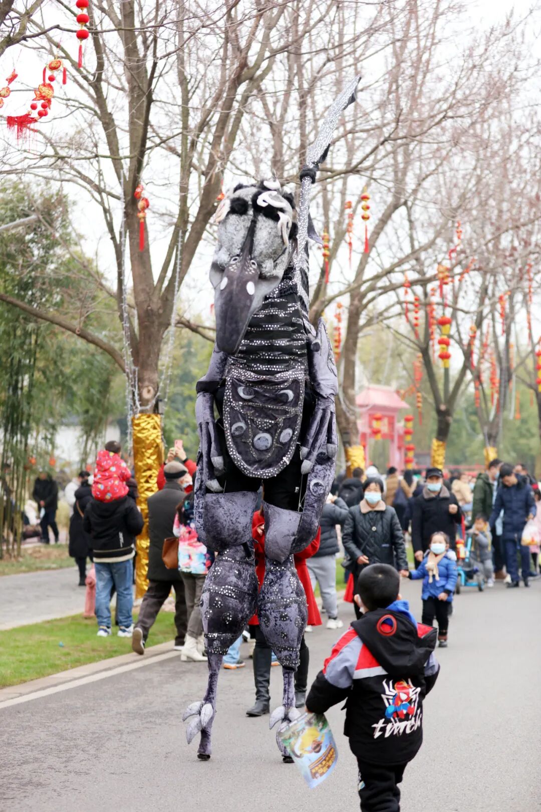 夜幕降临,园内至长江文明馆沿线灯谜长廊闪亮,夜光龙狮舞动、东内广场“唐宫夜宴”杂技火舞汉唐舞轮番上演、500架无人机每天两场不重复直到20:00。