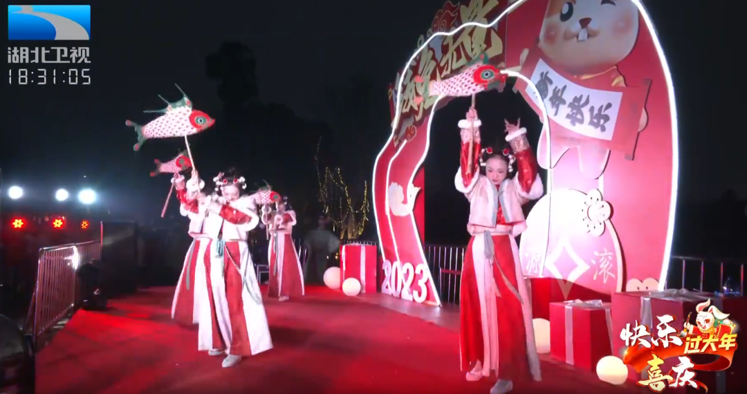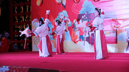 采青梅花桩走钢丝、采莲船舞龙绸大头娃娃