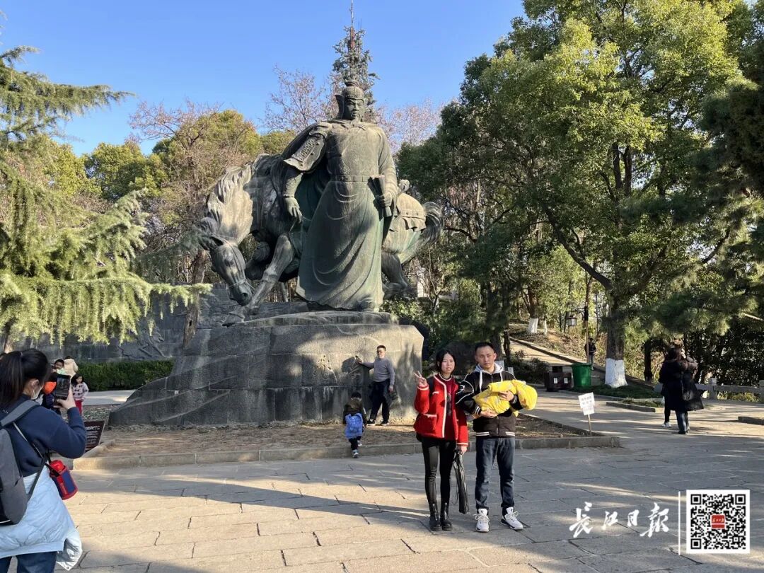 游客在黄鹤楼公园岳飞铜像前留影。万建辉 摄