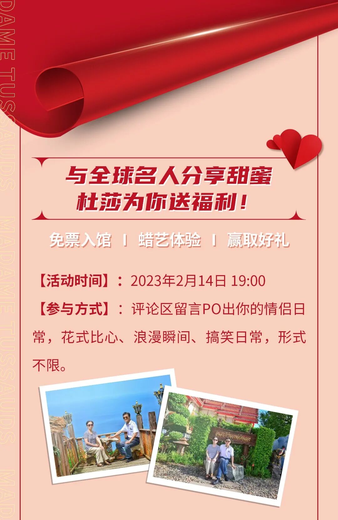 杜莎夫人蜡像馆|【情人节免费招募】来一场心花怒放的情人节约会吧!